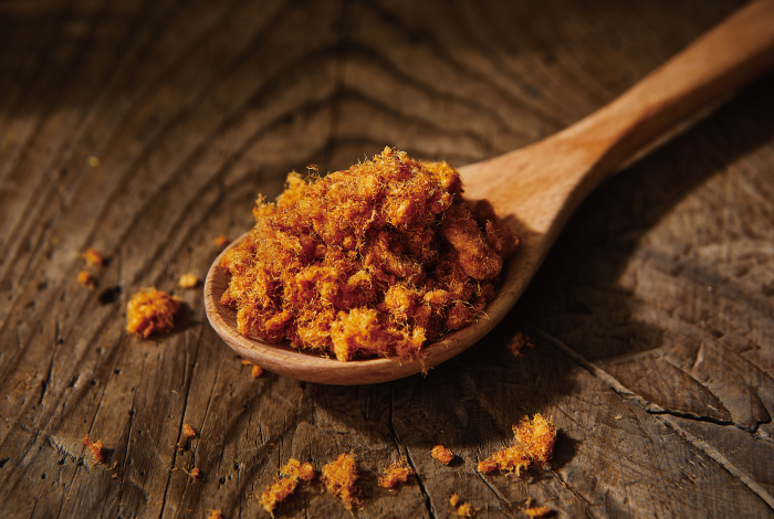 100%使用台灣在地飼養"桐德黑豚腿肉",大成獨家工法、慢火細炒,呈現自然金黃色澤